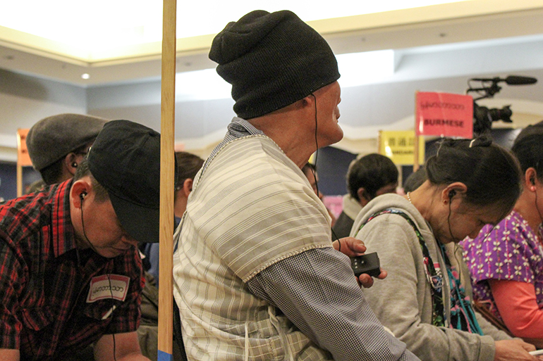 Asian Health Services employees translate the English speeches into 10 Asian languages, including Mandarin, Cantonese and Vietnamese. (Kellen Browning/California Healthline)((Kellen Browning/California Healthline))