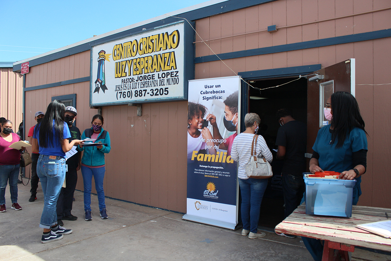 El Sol held a pop-up vaccination event Feb. 17 at Centro Cristiano Luz y Esperanza, a church located off a two-lane expressway in Adelanto, surrounded by desert scrub. Medical staffers, students and vaccines arrived from Loma Linda University Health, about an hour away, to vaccinate 250 people, and returned a month later to give people their second doses.