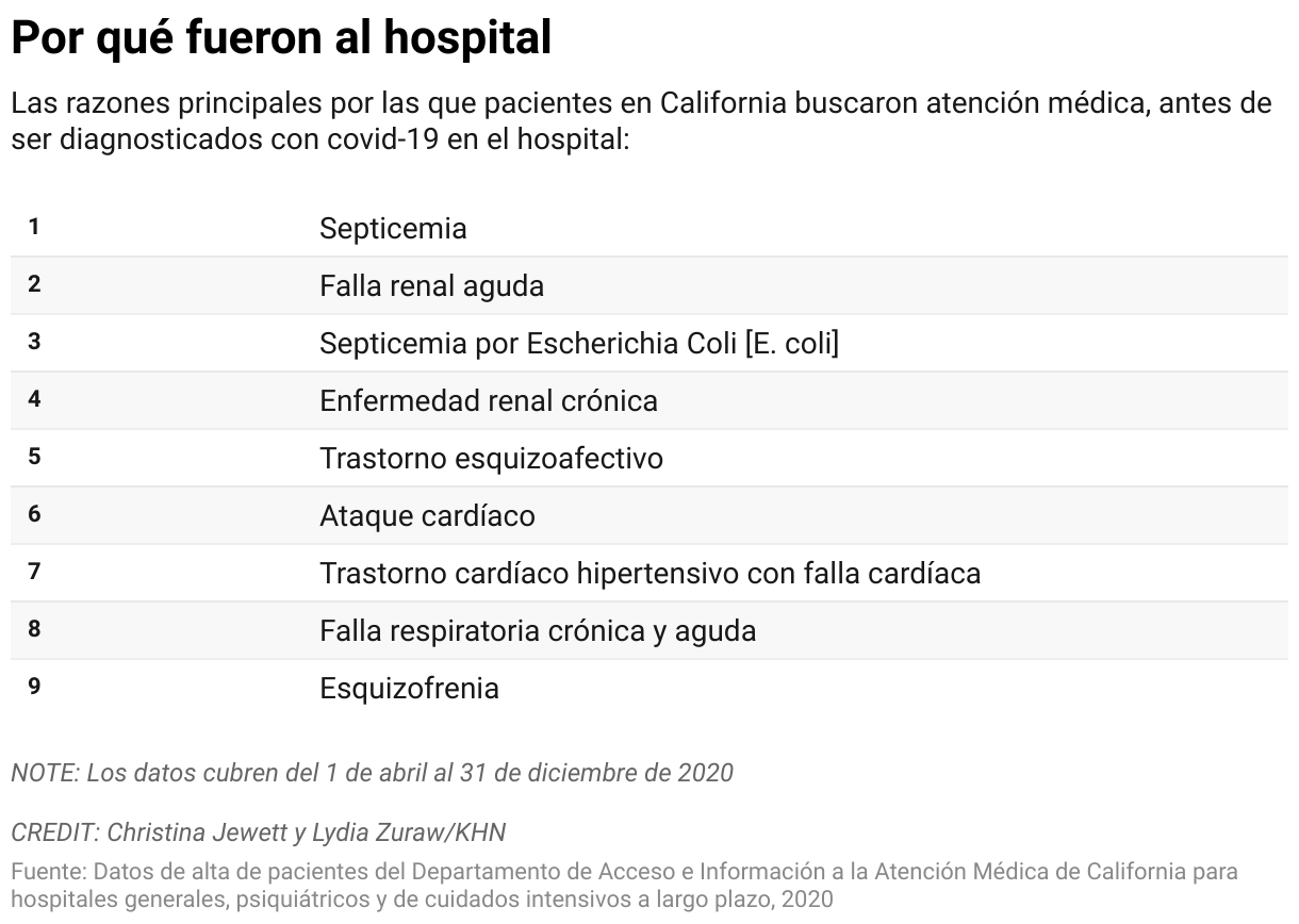 Más de 10,000 pacientes fueron diagnosticados con covid en hospitales de los Estados Unidos el año pasado, después de ser admitidos por otra causa, según registros federales y estatales analizados exclusivamente para KHN.