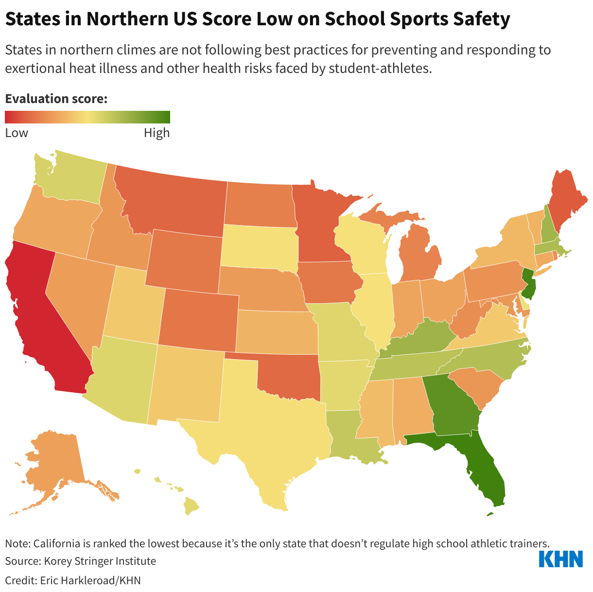Health experts and researchers say states — especially the states in the northern U.S., such as Idaho, Maine, Montana, and North Dakota — aren’t adapting fast enough to keep high school athletes safe. Students and their families have sued schools, accusing them of not doing enough to protect athletes. Many states that have taken action did so only after an athlete died.