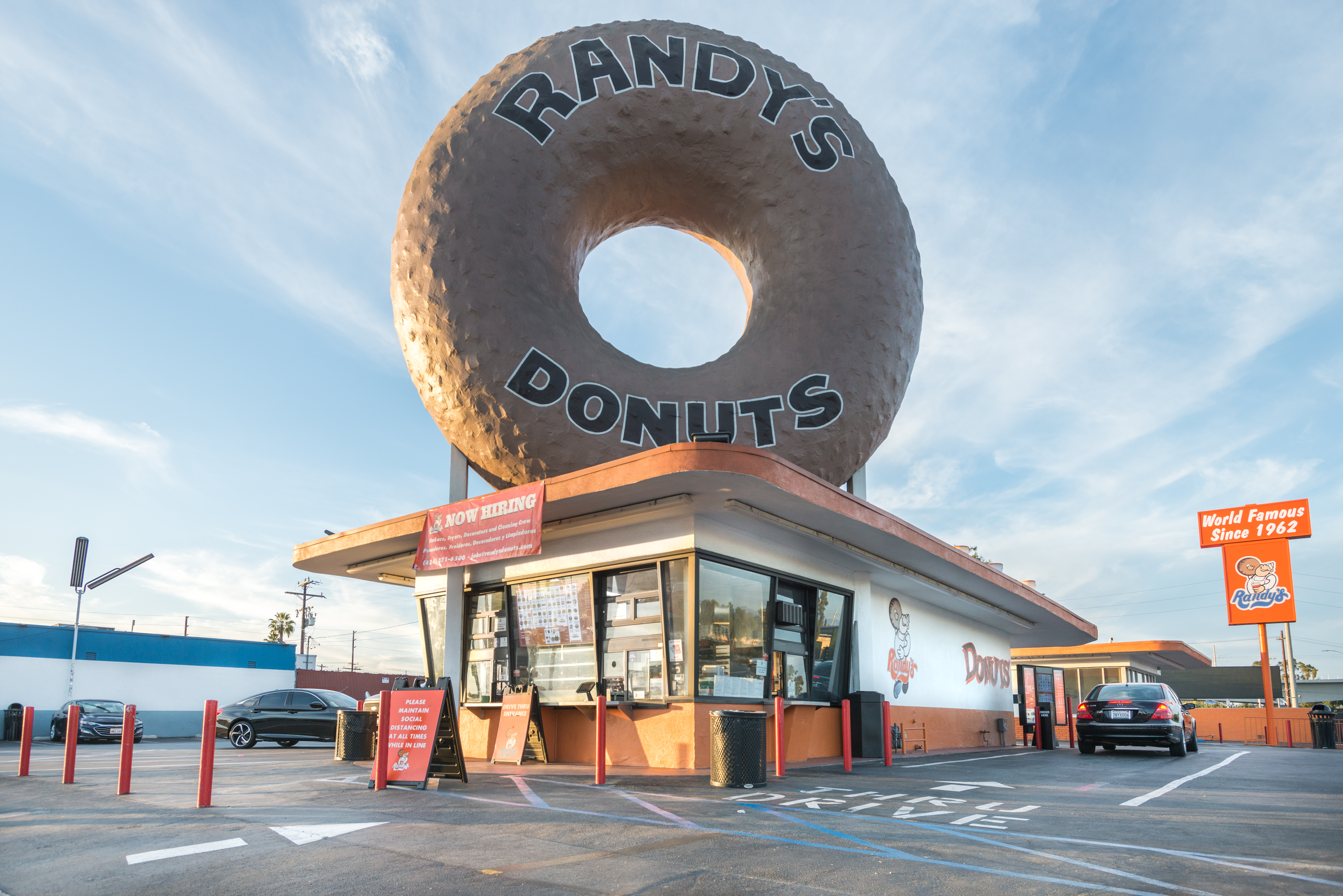 November 2020: There weren’t many customers at Randy’s Donuts in Inglewood on Tuesday, but the shop is hiring. (Heidi de Marco/California Healthline)