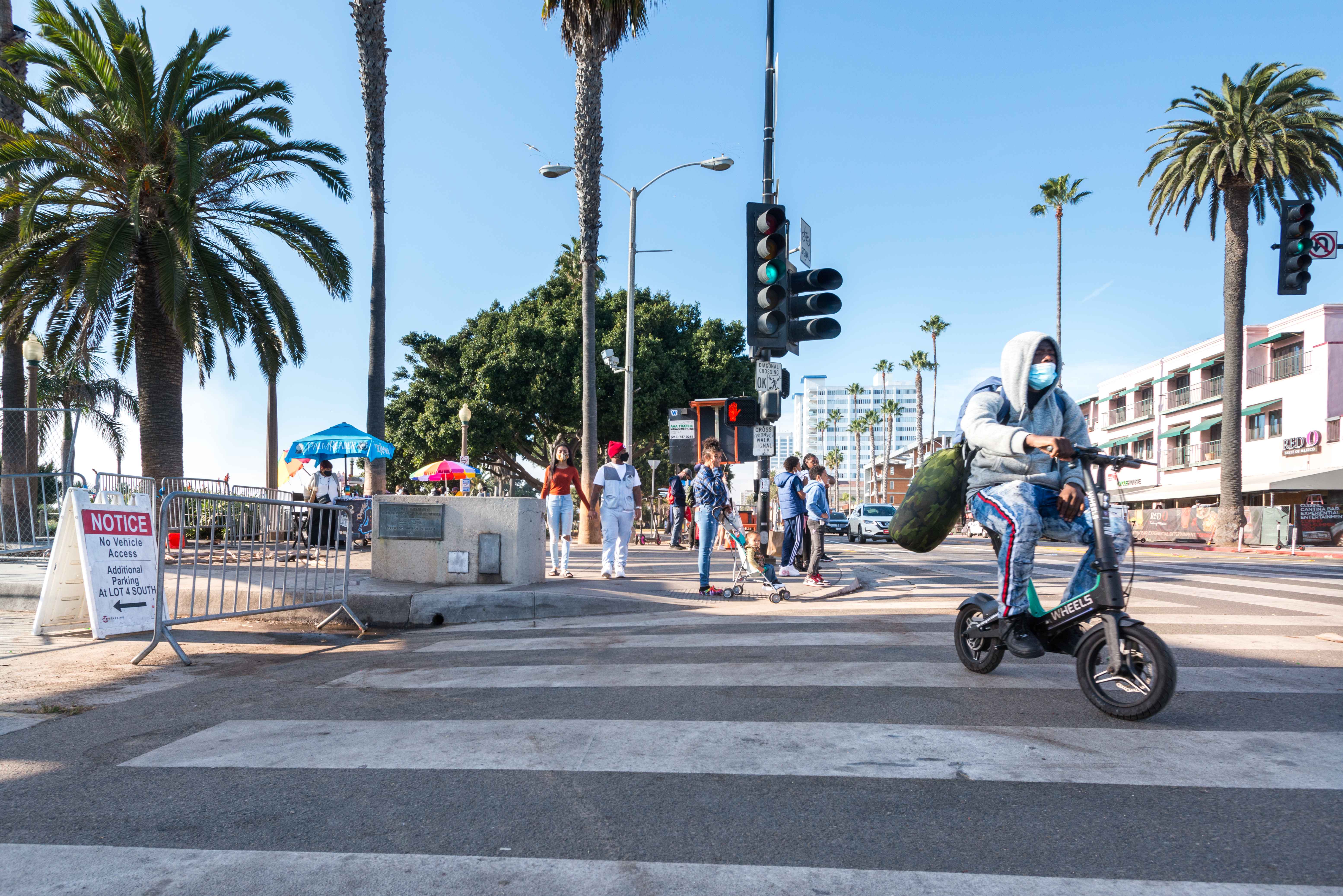 Eight months after California Healthline’s Heidi de Marco photographed LA under lockdown, she returned to the same iconic spots. Vehicle and foot traffic are up — as are coronavirus cases.