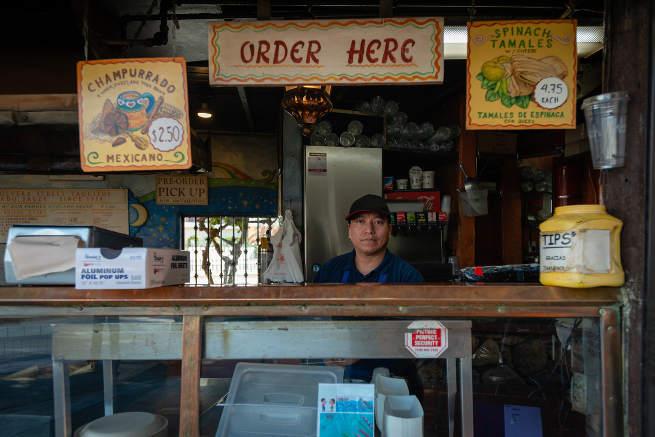 March 2020: Ricardo Gaytan, a cook at Cielito Lindo on Olvera Street, said he feared that with only a few customers a day, the restaurant could close completely. (Heidi de Marco/California Healthline)