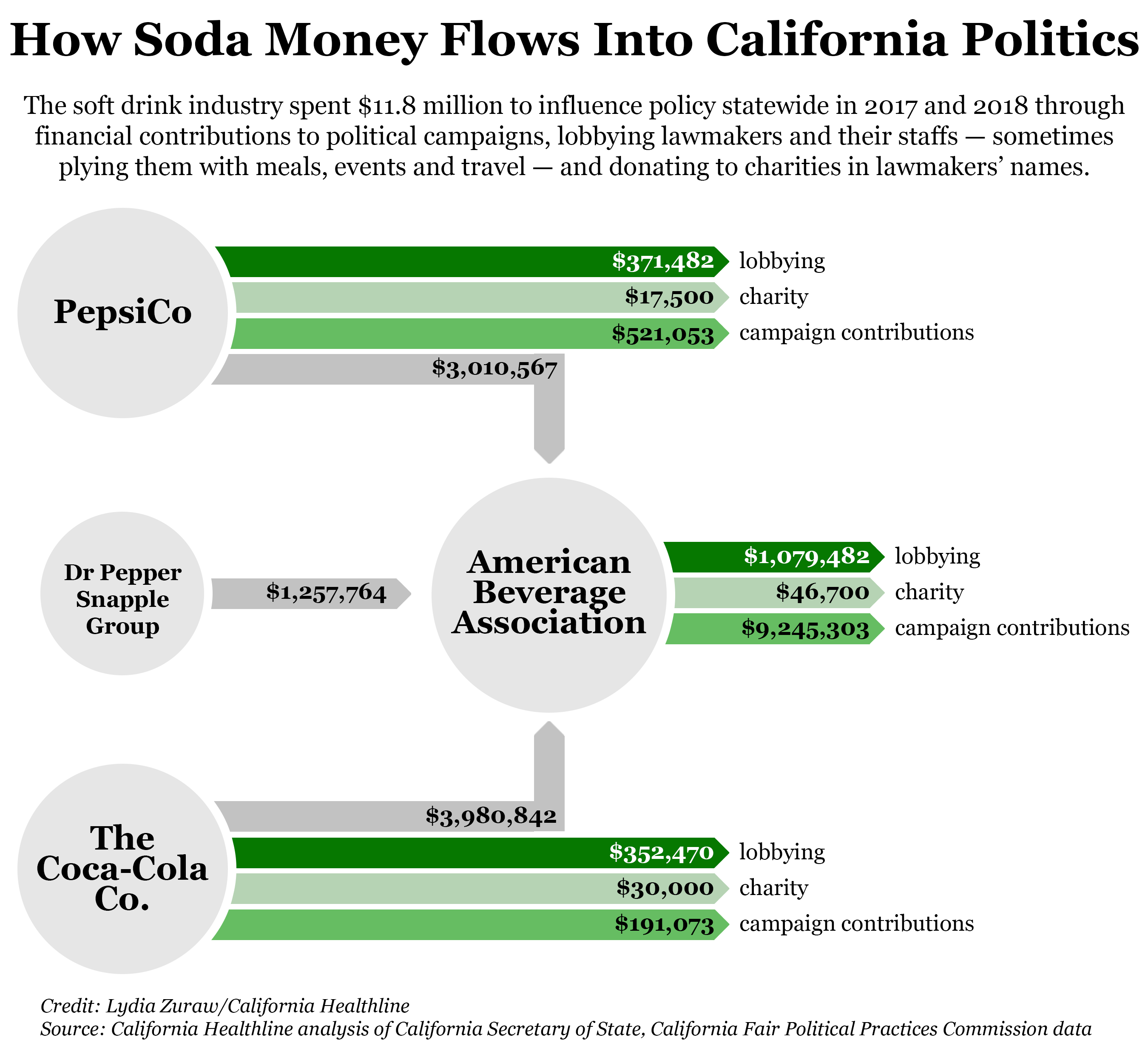 How California Healthline compiled data about soda companies’ political spending