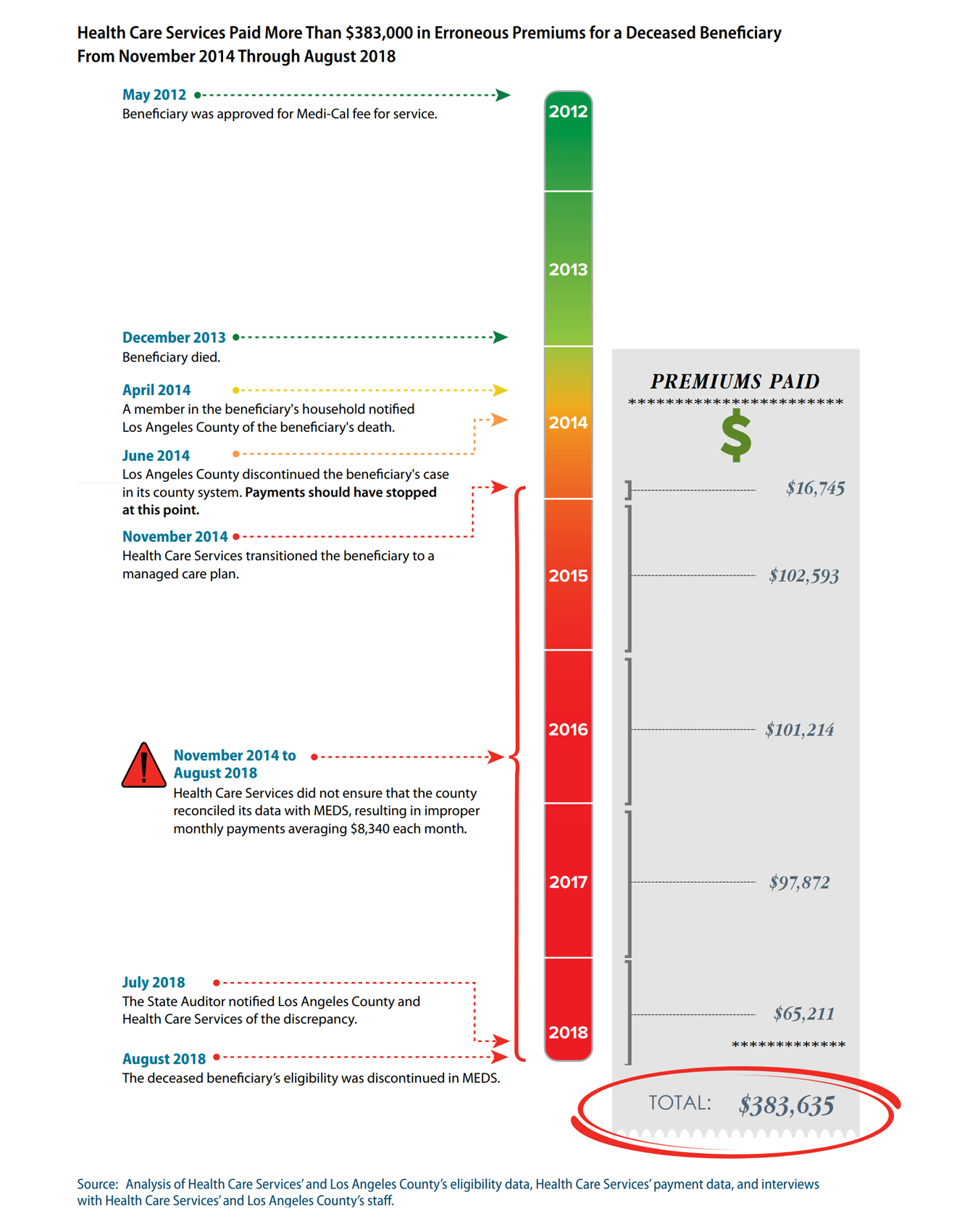 California paid a managed-care plan $383,635 to care for a person in Los Angeles County who had been dead for more than four years.(Courtesy of California State Auditor)