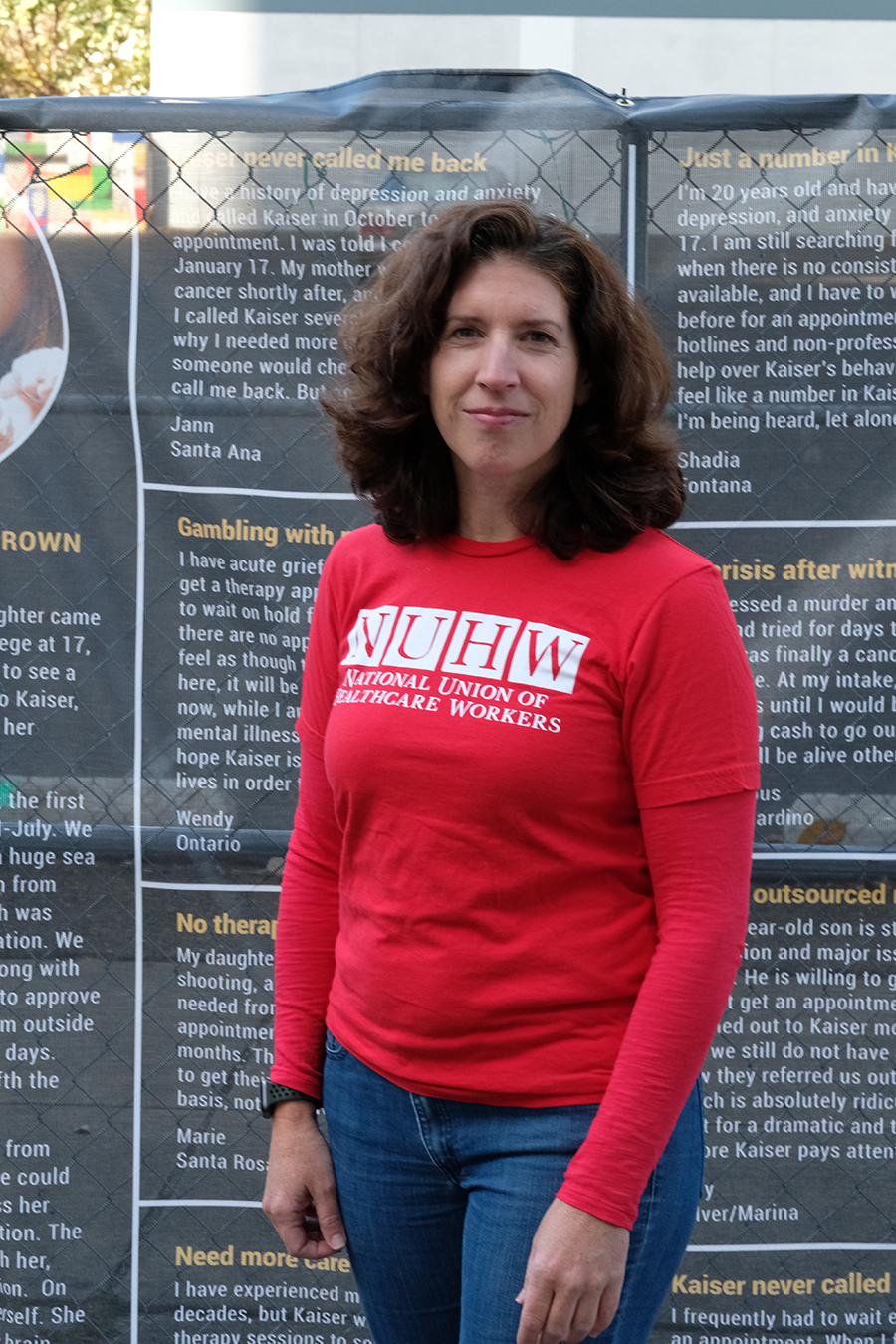 Ann Rivello, a therapist who works at Kaiser Permanente Redwood City Medical Center, says she’s frustrated that Kaiser Permanente markets itself as a leader in mental health care. Her patients have to wait about two months between appointments for individual therapy, she says.(Credit: Chris Joel)