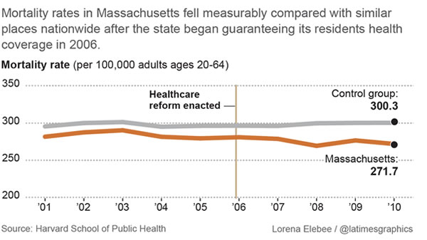 That’s largely because the findings from Massachusetts put real numbers around a potential impact of coverage expansion: For every 830 people who received coverage, one death was prevented, the authors say.