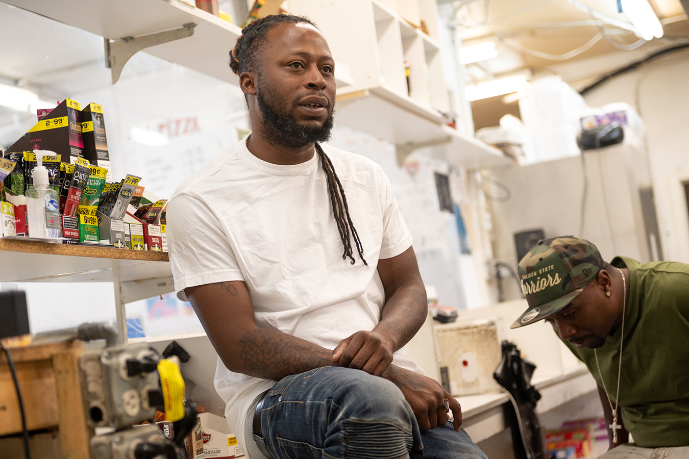 Rias, who says he has been both a drug dealer outside a store and now a store owner, defended other local corner store owners, explaining that most “don’t mess with drugs.”(Michael B. Thomas for KHN)