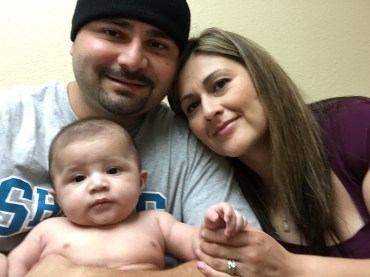Danny Contreras and his wife, Claudia, wait in a doctor’s office with their son Danny Jr., who needed some shots. Contreras urges other dads to take paid family leave. “Be there for your kids. Be there for your wife,” he tells them. (Courtesy of Danny Contreras)