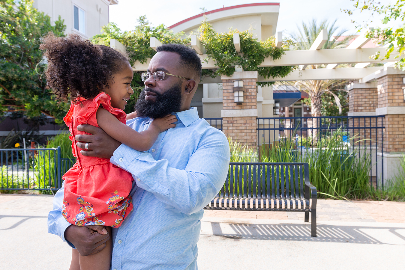 Walter Daniel plays with daughter Victoria near their apartment in Dublin, Calif., earlier this fall.(Heidi de Marco/KHN)