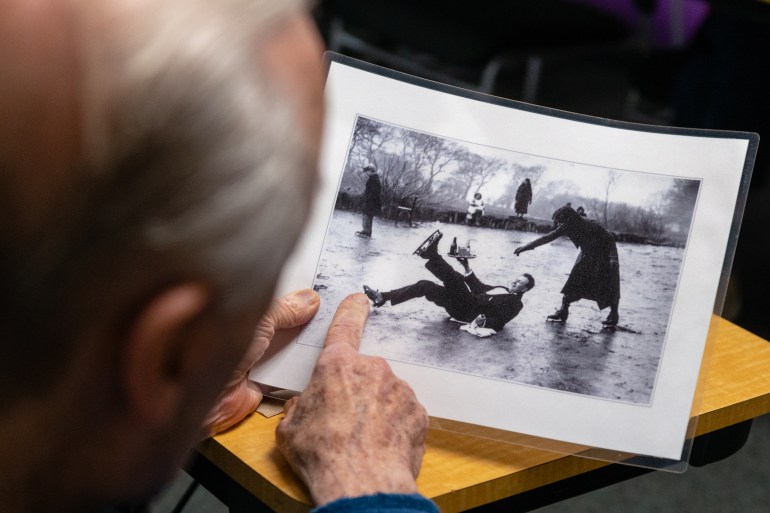 As part of the TimeSlips exercise, all participants are given the same photograph and asked to answer questions about what’s happening in the scene. "Every person in the group responded in their own way, with a range of verbal capacity and lucidity. But they responded!" Jacobus says.(Heidi de Marco/California Healthline)