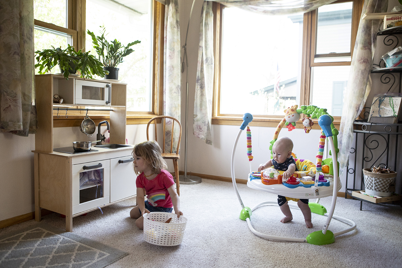 When Kerrschneider had her daughter, Eleanor, in 2016, she’d had an epidural and didn’t like being confined to her bed. When she gave birth to her son, Leviathan, in 2018, she chose nitrous oxide instead.(Ackerman + Gruber for KHN)