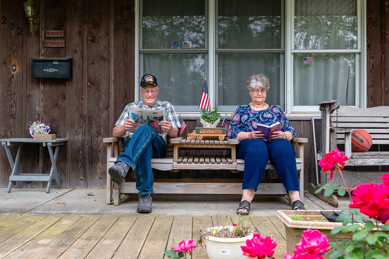 Lewis Bybee, a retired veterinarian and I-70 Community Hospital board member, and his wife, Janice, on their porch in Sweet Springs, Mo. “All he did was take from us,” Lewis says of Perez.(Heidi de Marco/California Healthline)