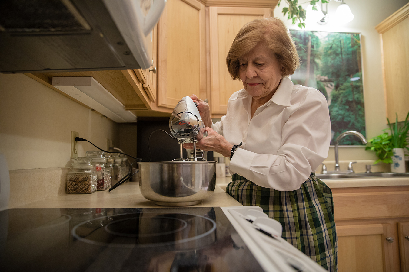 Kelly, 91, is well-known for her cooking and parties. During the holidays, she hosted 20 people from her retirement village for a walnut torte baked from scratch. (Tim Betler/UPMC)