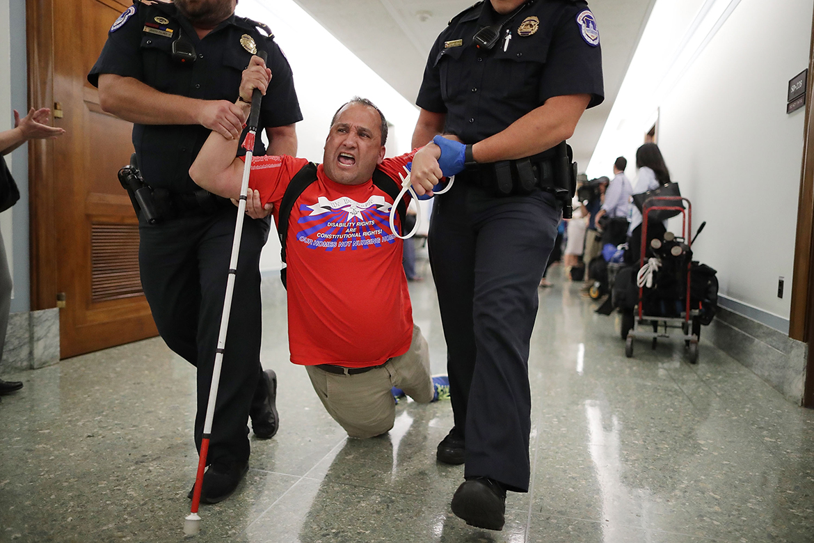 Hundreds of protesters were turned away from the Senate’s public hearing on the Graham-Cassidy bill to replace the Affordable Care Act, but they made their feelings known outside the door.