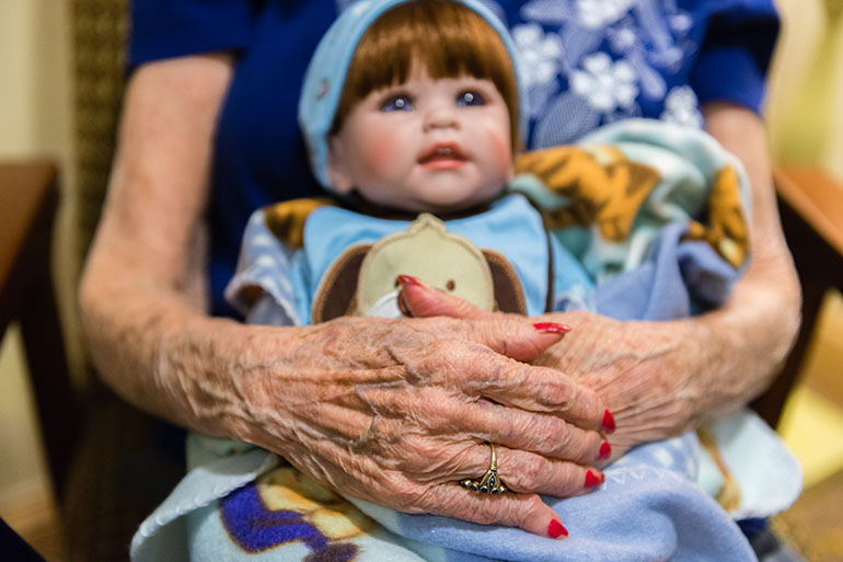 Caregivers aren’t trying to make their charges believe the dolls are real infants, and they don’t want to infantilize the seniors, Drew said. They are just “trying to meet them where they are and communicate with them in a way that makes sense to them.”