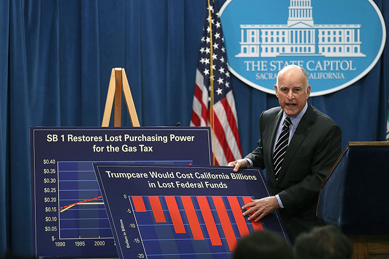Gov. Jerry Brown hopes to forestall massive federal funding cuts under the GOP health care bill but proposed a fiscally conservative budget to prepare for that scenario.