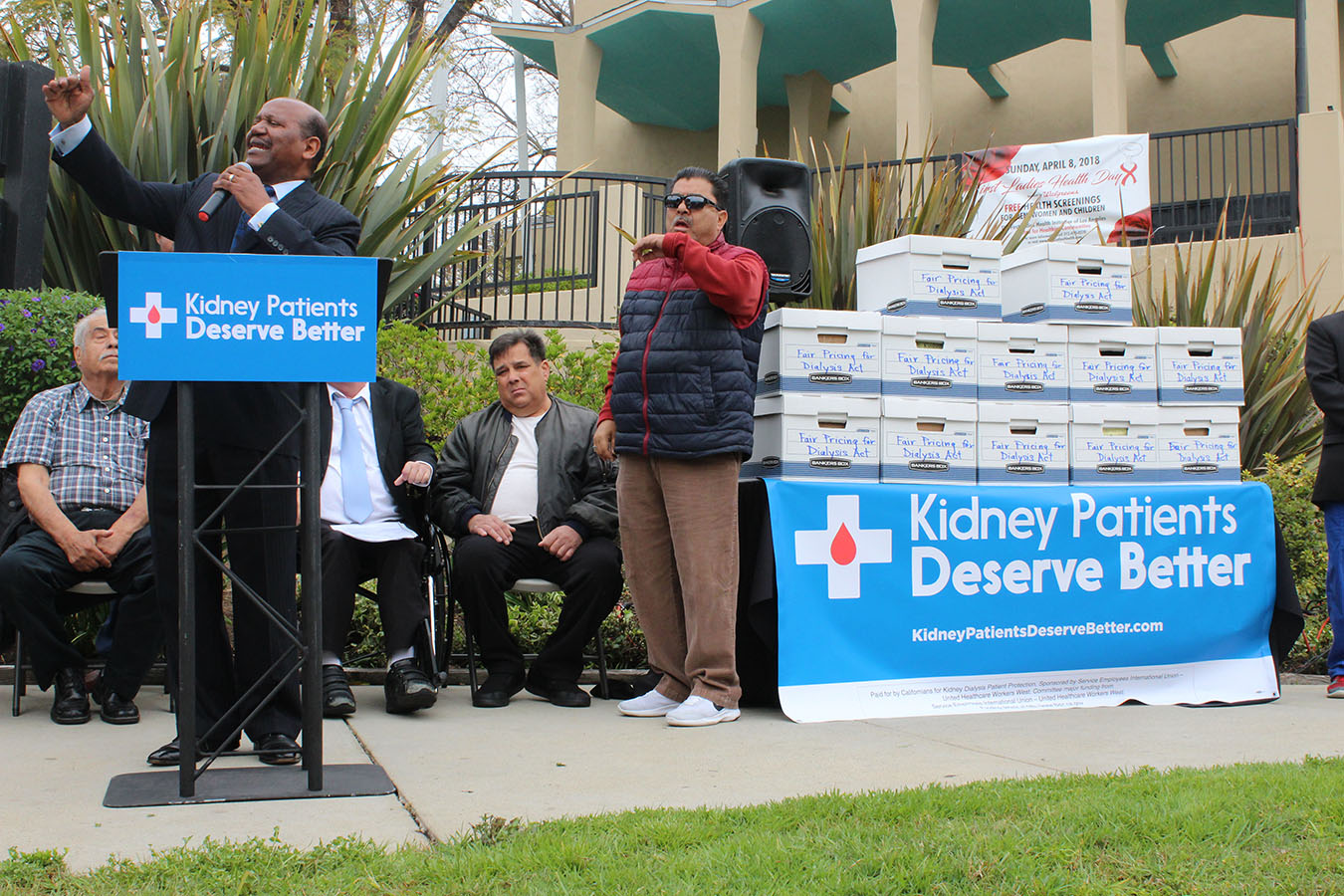 Frustrated by dialysis centers they call dirty and understaffed, patients and health care workers rallied across California Thursday before delivering more than 600,000 signatures to election offices in support of a ballot initiative intended to improve patient care.